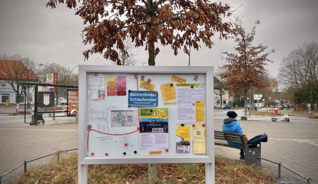 z. B. hängt dort immer der aktuelle Newsletter von „Bahrenfeld auf Trab“.